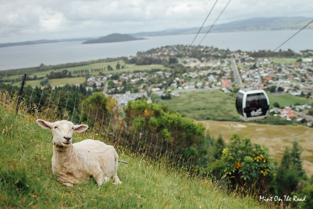 心里的后悔种子刚刚萌芽,车刚好在Rotorua知名景点Skyline停车场停下。不想再当灯泡,我以玩Luge滑板车的价钱昂贵当挡箭牌,买好Gondola缆车车票就立刻自动消失。明明滑板车才是大家慕名到Skyline来的原因,但一粒灯泡,玩什么滑板车呀~