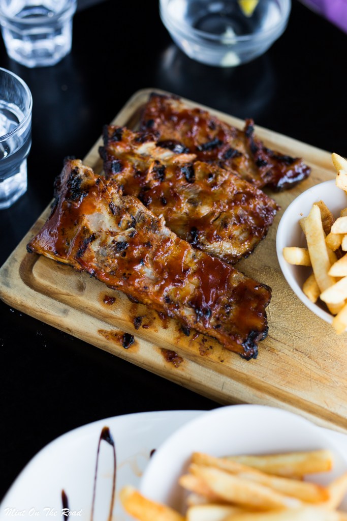 Lunch Time 到来,我们以 30NZD 点了一份 Ribs and Chips 和一份 Flame Open Steak Sandwich and Chips,若是其他时间到来,那可是得用双倍价钱才品尝得到的说。