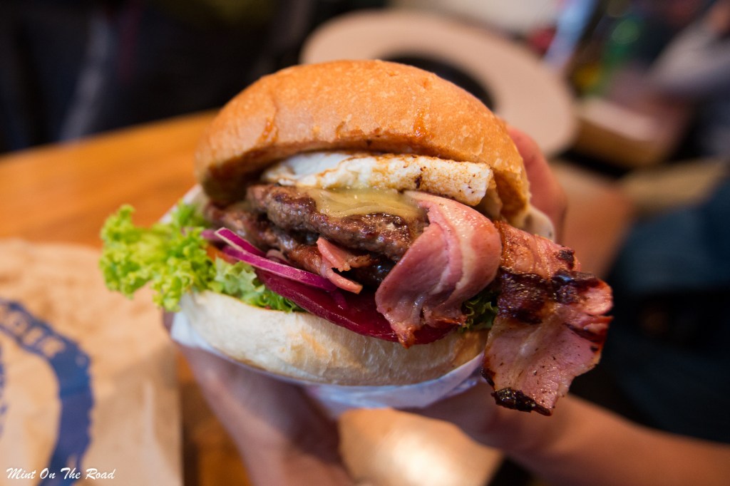 我跟 M 在环岛时,为了省钱,都是 M 在做饭。他很会做饭,也很享受烹饪过程,但来到 Queenstown,见他走过 Fergburger 时回头回了 N 次,我就知道他其实很委屈。也是,毕竟是吃货呀,少了异国美食的旅行,对他而言,一定很乏味。跳完 Skydive 那一天,我决定请 M 去吃 Fergburger,庆祝庆祝。岂知那一吃,就挑起了他对美食的无限欲望,从此,我们在 Queenstown 的冒险之旅就变成了美食之旅。