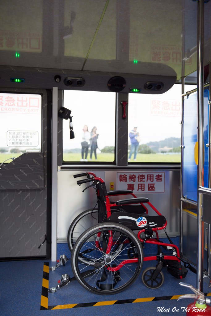 台北市双层观光巴士的上层有47个座位,下层则有9个座位和1个无障碍轮椅停靠区。