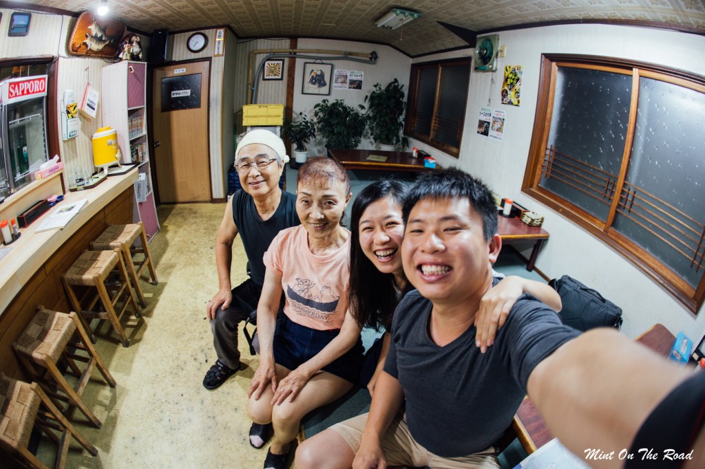 那店里一直只有我们2个,我们吃完后,老板和老板娘也忙完了,出来问我们从哪里来,想往哪里去?现在回想,其实觉得很神奇,他们说的几乎全是日文,我们说的几乎全是英文,但比手划脚地猜一猜总能猜到对方在说些什么,而且那一聊就聊了2小时。