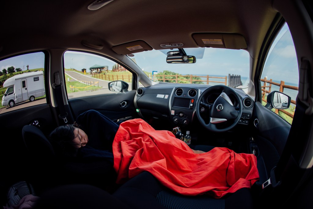 [睡车好吗?]我想了很久后问M[反正是夏天,不冷的。]睡车这事,我在纽西兰时问了很多次,他总说不安全,但没想到这一次他想也没想就说好。