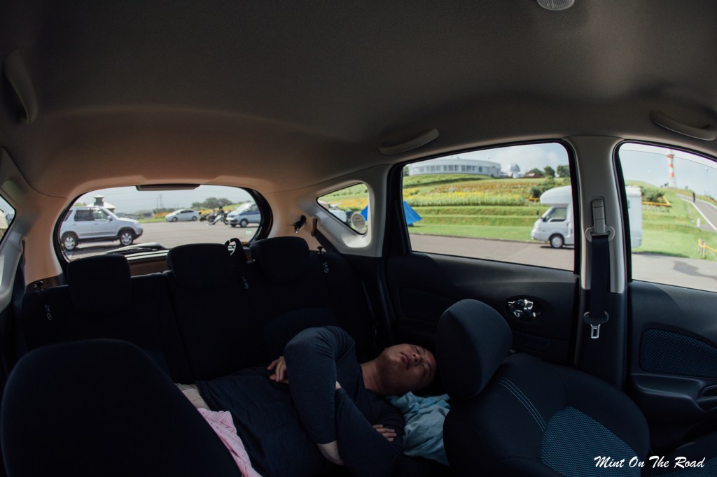 7点半回到岬台公园,停车场里多了好多Campervan,我们找了个好地点,再用笔电看一套电影,不到10点就睡觉。可能因为我脚短吧,睡车,我其实觉得很好睡,重点是好玩,而且天亮一睁眼就是一抹蓝,特浪漫。