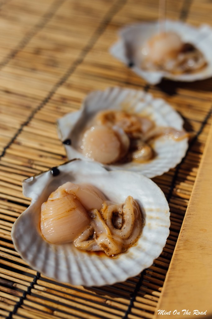 一口咬下,我跟M互看了一眼,完全分不清那是他眼里还是我眼里的星星。扇贝Sashimi好好吃,我的天呀,没有一丝腥味,一口咬下口里炸出的全是扇贝的鲜和甜,我词穷,想不出该怎么形容,但在那一个Moment,即使是金城武想吻我,我也会为扇贝放弃他的吻。