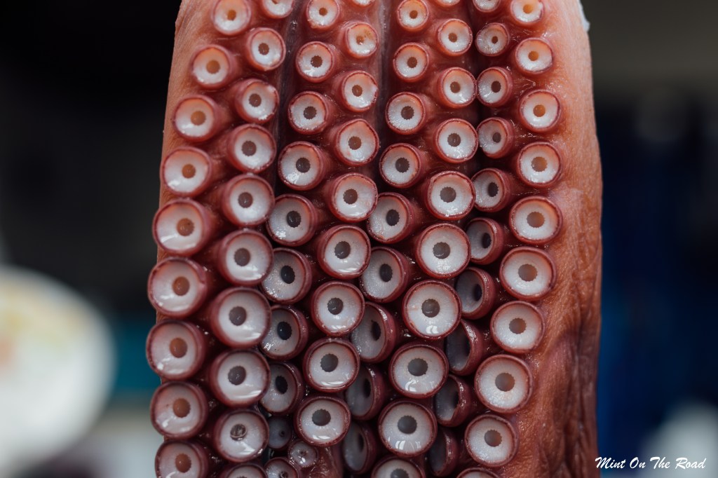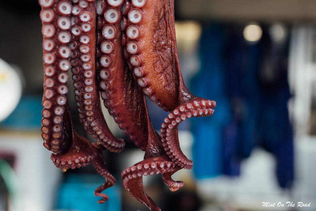 巨型章鱼也是臼谷渔港的特产。我有点密集恐惧症,一看到这章鱼脚就觉得有千千万万个章鱼吸盘吸在我身上,所以生吃章鱼我就Pass了。