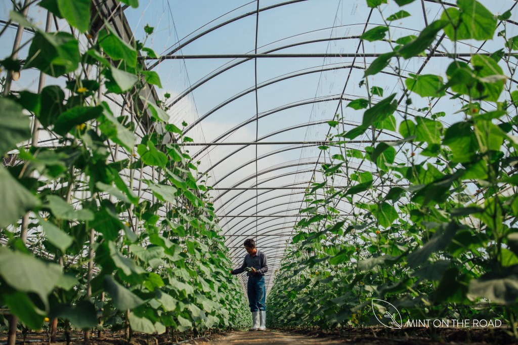 回说平安田园,陈大哥用的是[黄金廊道],采集雨水来浇水的系统,而且一直坚持无毒,少农药,所以种出来的小黄瓜和番茄(可惜我们到来时番茄正好休耕)品质特别好。