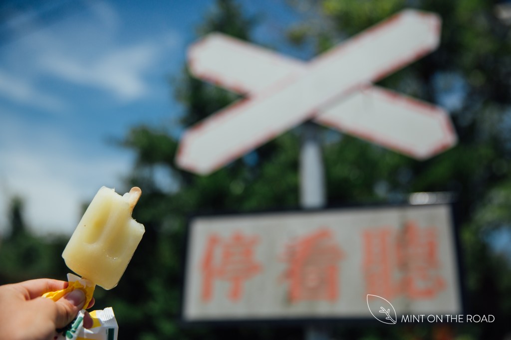 钟情那古色古香的老车站,我们在木门前拍Profile Picture拍得不亦乐乎,原本在休息的老站长放下手中的报纸,拿了站长帽走来,说借我们当道具并哈拉了两句。[知不知道伍佰?][他的家就在附近的蒜头村,他爸爸以前是糖厂的员工][他的《返去故乡》MV就是在这里拍的哦~]在站长的热情前,太阳公公似乎止了步,原本炽热的空气里吹来了一阵清凉的风。
