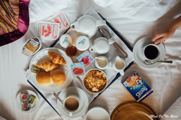 730am,我们的Day3闹钟是门铃,是船员送来我们前一天点好的Breakfast,传说中的Breakfast In Bed。我压根儿没想过,早上一睁开眼就有食物送到床上,会是那么幸福的一件事。