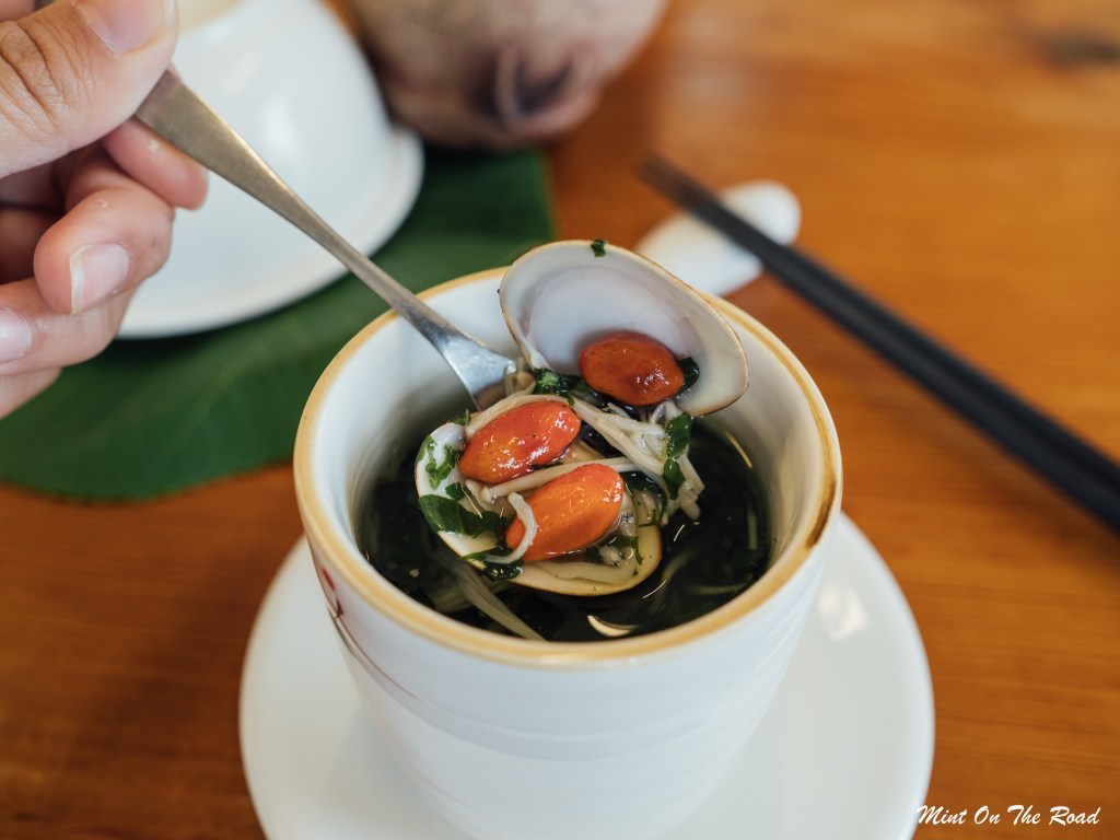 第三道上桌的是汤品—野菜芙蓉蒸蛋。野菜、蛤蜊、枸杞三种不同层次的甜全在这一口蛋里,不得不说,它完全颠覆了我对蒸蛋的想象。