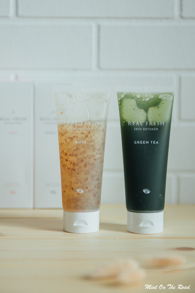 绿茶味的Real Fresh Skin Detoxer则是采用来自韩国济州岛绿茶茶叶所制成。绿茶里丰富的维他命C和抗氧化成分能有效帮助清理毛孔里的残留物、净化肌肤、保湿和提亮肤色,适合睡前用。平时也不特别喜欢绿茶产品,可这Green Tea Detoxer的味道却是意外地让我放松。