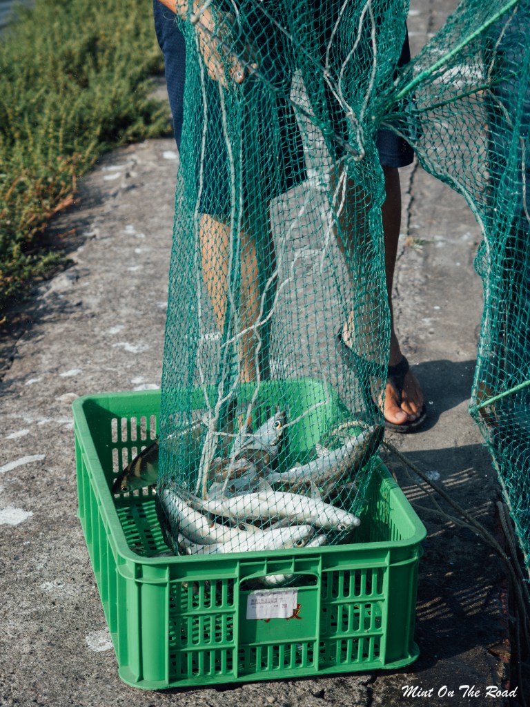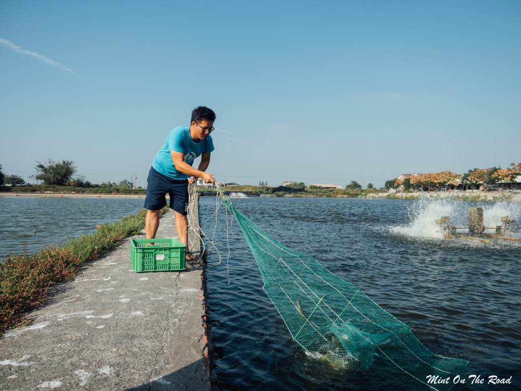 说完故事,阿正带我们去体验捞虾。一网捞起,一堆活跳跳,一不留神就会弹跳逃回池里的白虾,放进锅里,加一点点的醋和酒,焗一下,一碟香喷喷的酒焗白虾一下就给抢光。
