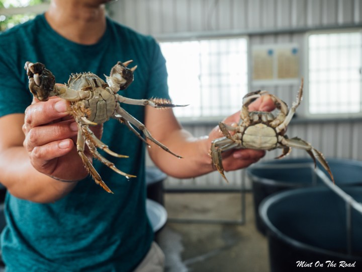 那一只大闸蟹双钳动也不动,跟模特儿似,乖乖地摆好Pose任他介绍。我实在难以想象,眼前这一位年仅35,拥有中国医药大学药学系学位,以前是药剂师的大男孩,究竟是怎么从零开始,创业,转战大闸蟹养殖场。