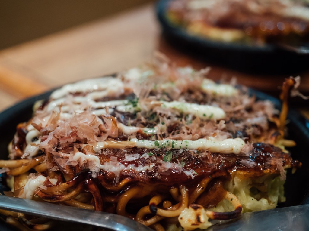 神户牛排、松阪牛寿司、三色丼、海鲜盖饭、海鲜串烧、河豚料理、关东煮、天妇罗等等,看得我们眼睛都花了,选择困难症发(≧∇≦)最后敌不过[花之木](Hana no Ki)传来的阵阵香气,点了到大阪必尝的大阪烧(Okonomiyako)和章鱼烧(Takoyaki)。