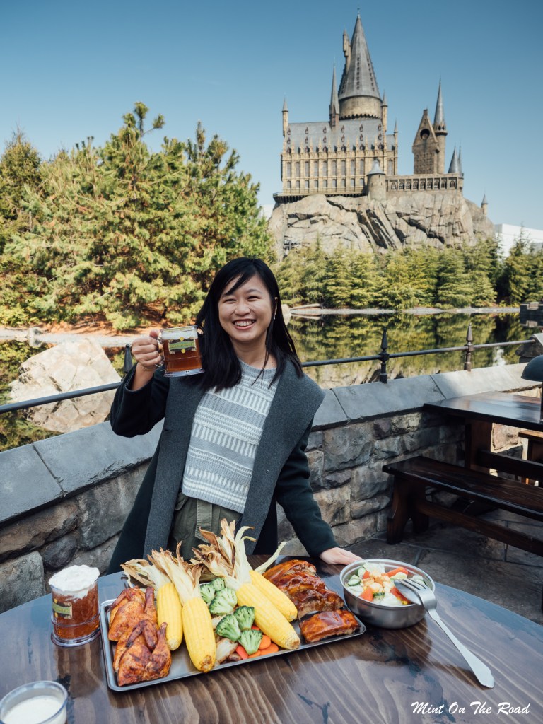 最后最后,难得来到哈利波特的世界,我们又怎么可能会错过到Three Broomstick湖畔赏景尝美食的大好机会呢。偷偷告诉你,别以为Butter Beer一定是冷的,Hot Butter Beer味道也很有惊喜。
