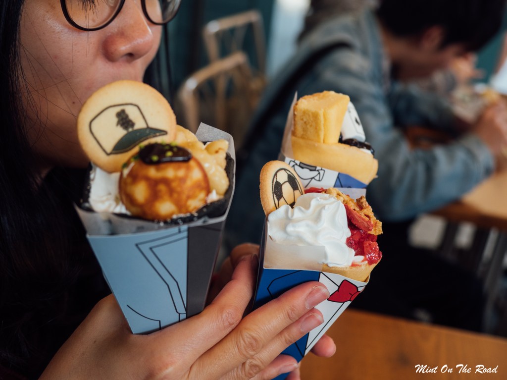 失败也没关系,过程最重要呀,重点是失败后,我们还去买了同是2019夏季限定的Conan Crepes来犒赏自己(≧∇≦)我尝的是Heiji’s Banana Chocolate Crepe,巧克力味好浓郁,而且咬到最后还有脆脆的玉米片,超级喜欢(双眼发亮)。