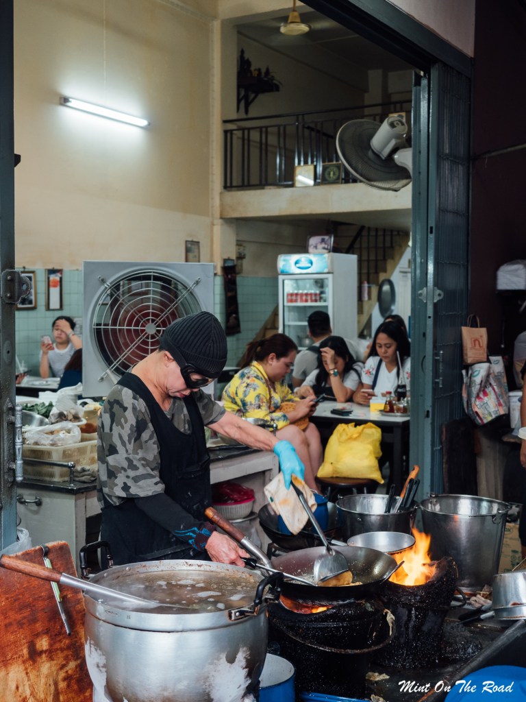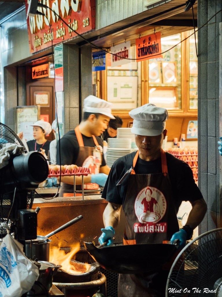 Thip Samai也是排队的呀,只是跟Jay Fai只有老太太在煎Seafood Omelette不一样的是,Thip Samai走的是[流水线]炒Pad Thai路线。