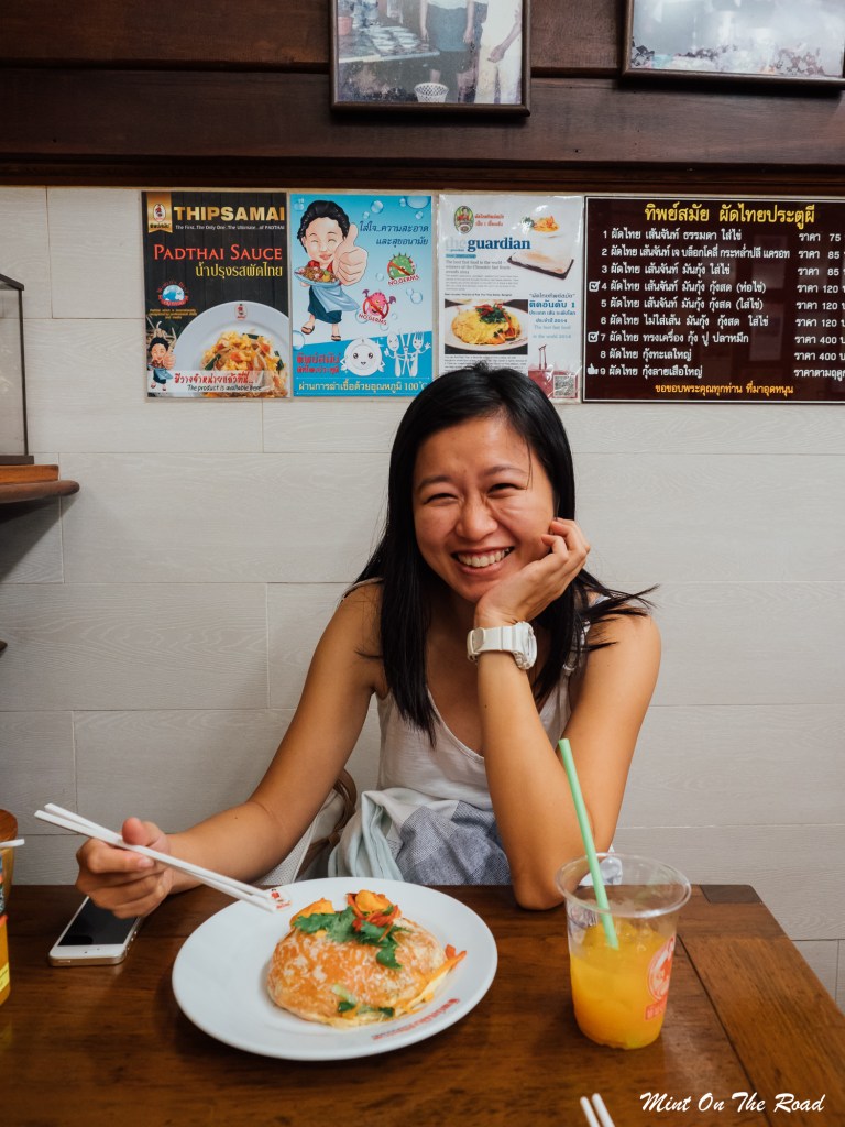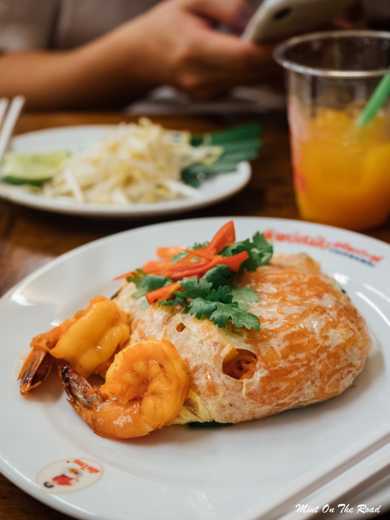 肚子实在不争气,一直在咕噜咕噜抗议,M决定我们到前面走2步就到的Thip Samai吃一顿垫一垫肚子,等下再回来等Jay Fai。