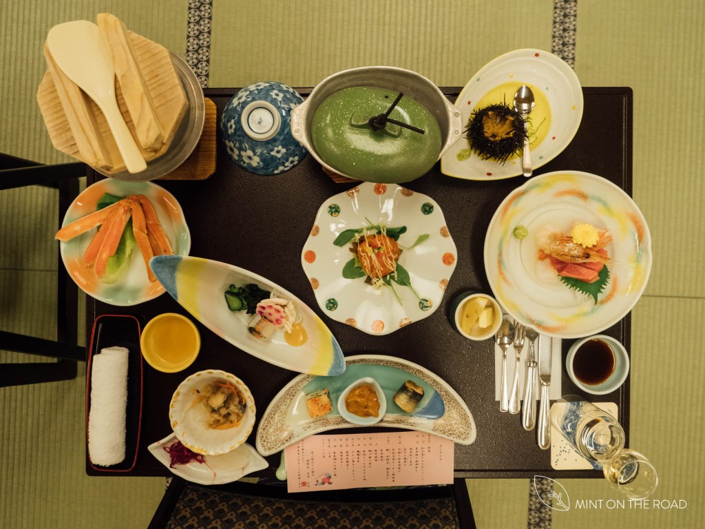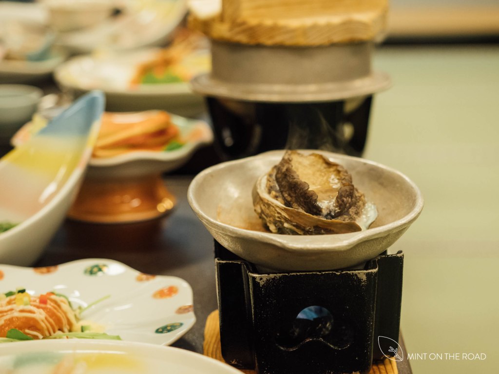 出发前早已听闻宫城县((Miyagi Prefecture))东临太平洋,盛产海鲜,我只是没想到,我会在一天24小时里把鲍鱼、鱼翅、海胆、旗鱼、金枪鱼、剑鱼、牡丹虾、牡蛎等等等等,一个海洋全吃进肚子里(笑)。其中,鲍鱼和鱼翅,最先登场于Minamisanriku Hotel Kanyo的高级怀石料理。