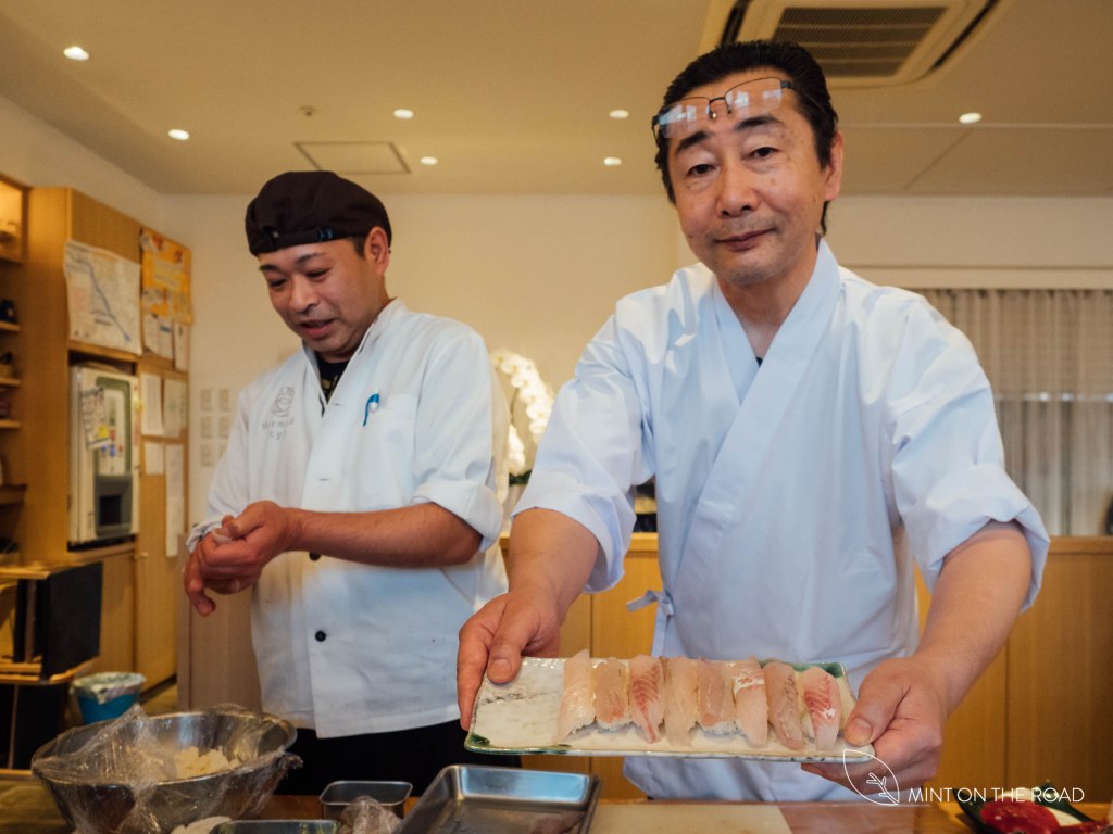 参观完毕,听到向导说[听完理论,下一步就是实践咯]我心里一惊,幸好,他说的实践,不是捕鱼,只是到附近的寿司店去学寿司DIY(笑)。