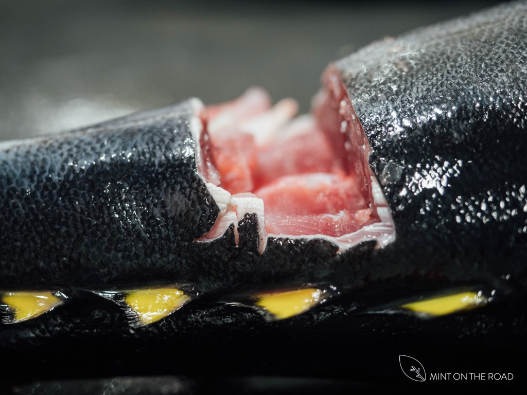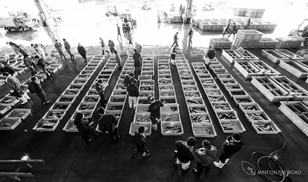 早上的7点到9点,是参观鱼市的最佳时间,于是我们追着阳光,6点半就已来到气仙沼市鱼市场。鱼市里的大型拍卖现场,平时只限会员买家进出,托蘋果旅遊的福,我们有机会走进渔夫们的日常,而且有专员为我们介绍和说明。