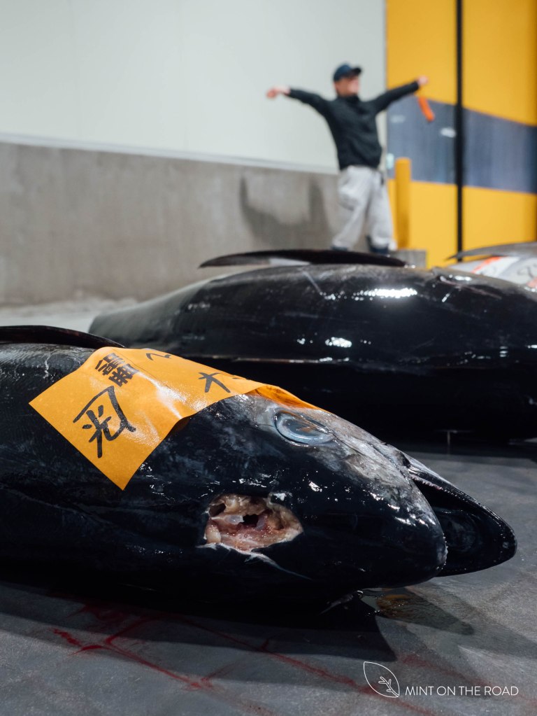 学很多,唯一可惜的是,当天天气不佳,只有一艘船进港,只有一只剑鱼和4只金枪鱼(苦笑),我们只好转场,到小型拍卖场去见识见识气仙沼鱼市场的活力。