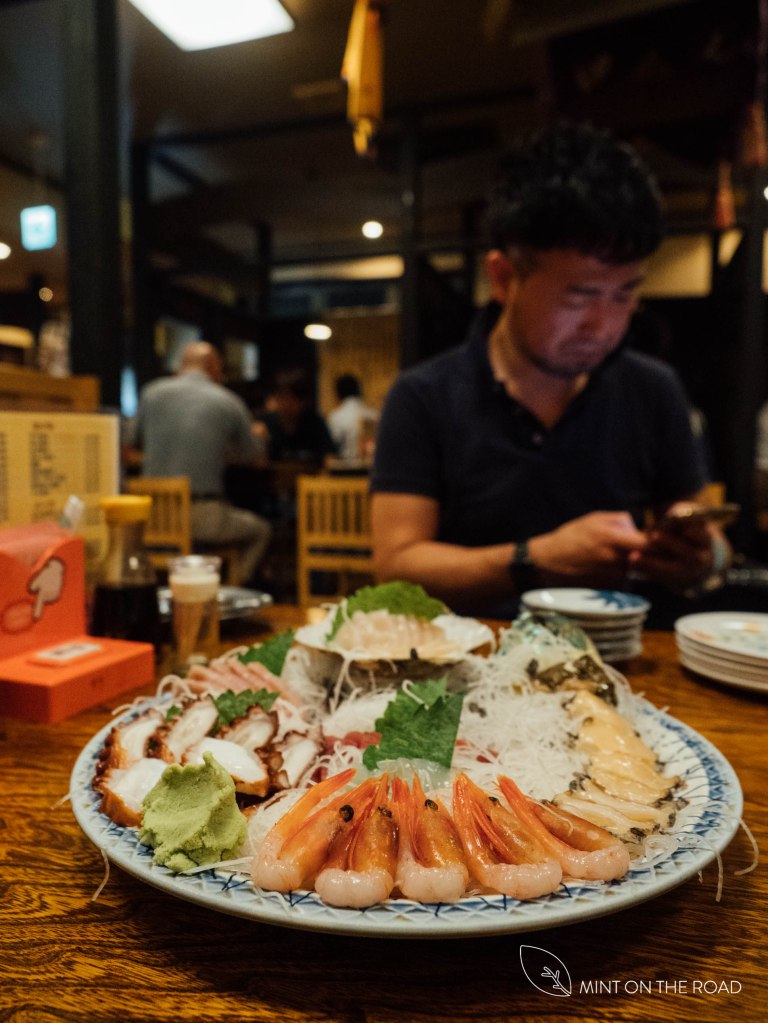 我觉得,旅行日本,不去居酒屋,是一种罪过(开玩笑的啦),所以在气仙沼的最后一天,我们来到了一家日文名叫[pinpon],我叫它乒乓的居酒屋。你知道的,在居酒屋里,食物不是重点,让人一秒放松的气氛才是。