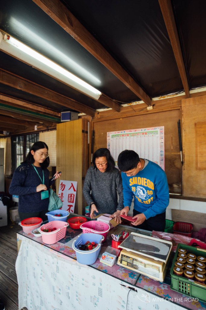 「我们家种的全是丰香啦,以前是种在地上,后来为让大家容易採,才在2005年改成种在高架上。」介绍完,她还很笑笑地说「拜托,别採太多,留一点点给我周末做生意呀」实在是太「古意」啦(福建话老实的意思)。