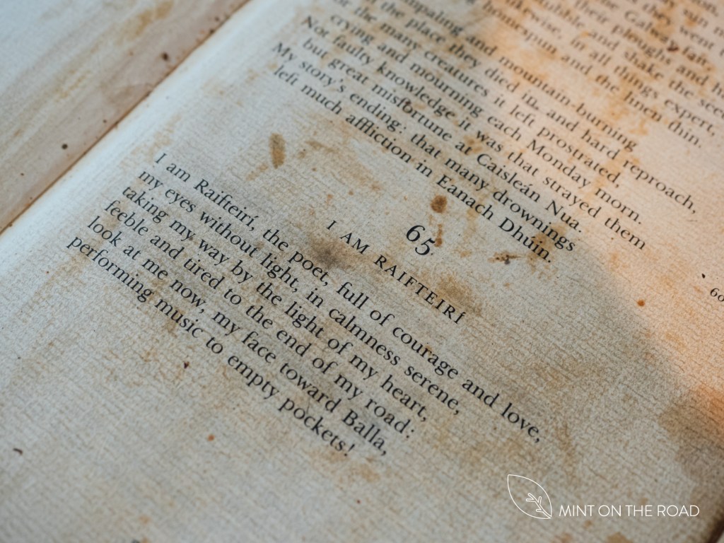 出发前,我在家看《晓说》,高晓松说爱尔兰人特别纯朴热情,跟喜欢聊天,还说他在乡间遇见的一位老奶奶竟会给他念诗。我当时不信,怎么可能不期而遇的老奶奶会念诗呢,肯定是节目组老早安排好的。结果老爷爷也为我跟酒哥念了一首诗。他在斑斑驳驳的老诗集里找出一首短诗,先用爱尔兰语给我们念一遍,之后又用英文再给我们念一遍。