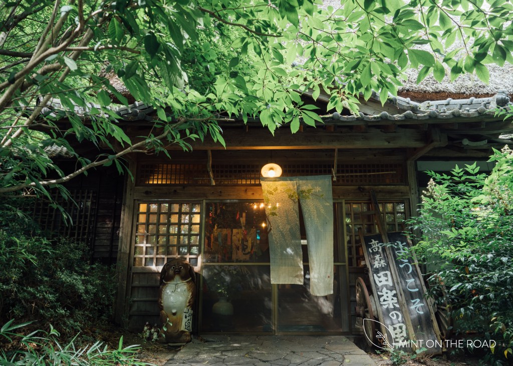 发现从我们住的旅馆去得花45分钟车程时,我们想放弃。在弯弯曲曲的荒野山路迷路时,我们想放弃。最后在一排耸入云霄的枫树后,找到近乎「隐身」山林间的高森田乐の里(Takamori Dengaku no Sato),已经是一小时后的事。