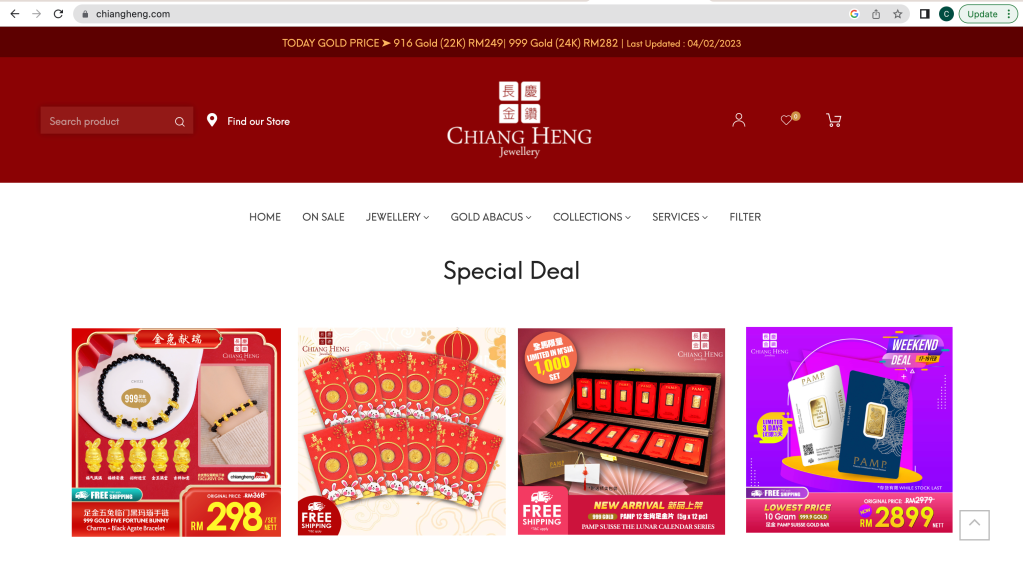 #長慶金鑽 有在网上销售(官网 https://chiangheng.com 及官方Shopee https://shp.ee/ea5ce5s ),但如果觉得金饰毕竟是贵重物品,得谨慎购物,也可以到他们全马18家分行去看看实物再决定。